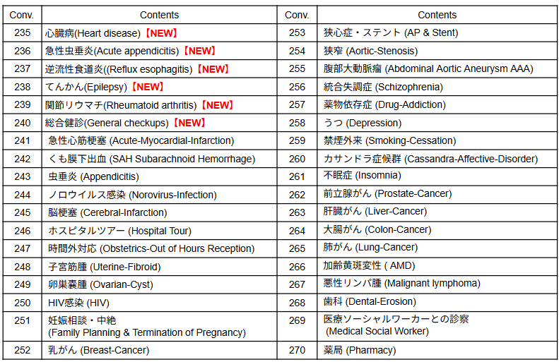 Medi-Learn-SPE-ML-CN(医療通訳試験対策)のコンテンツ一覧 (2/3)